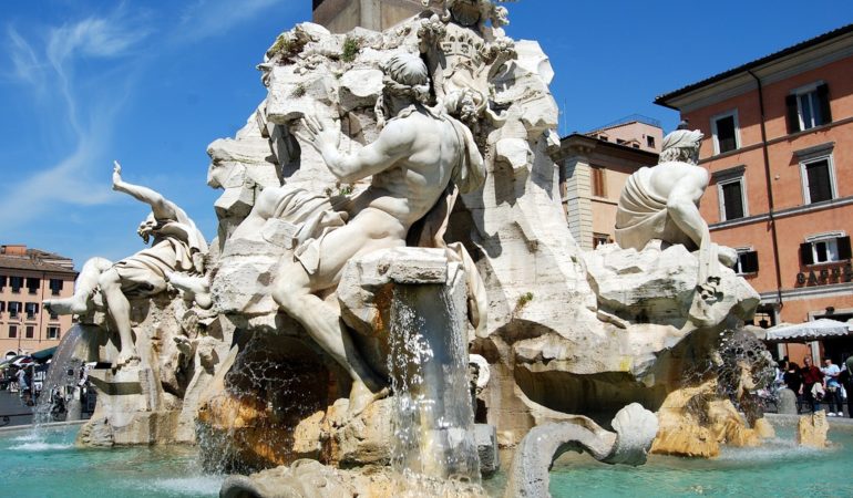 Gli elementi più affascinanti di Piazza Navona sono le tre fontane costruite durante il mandato di Gregorio XIII Boncompagni: Fontana dei Quattro Fiumi, Fontana del Moro e la Fontana del Nettuno.