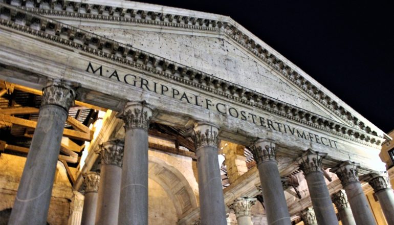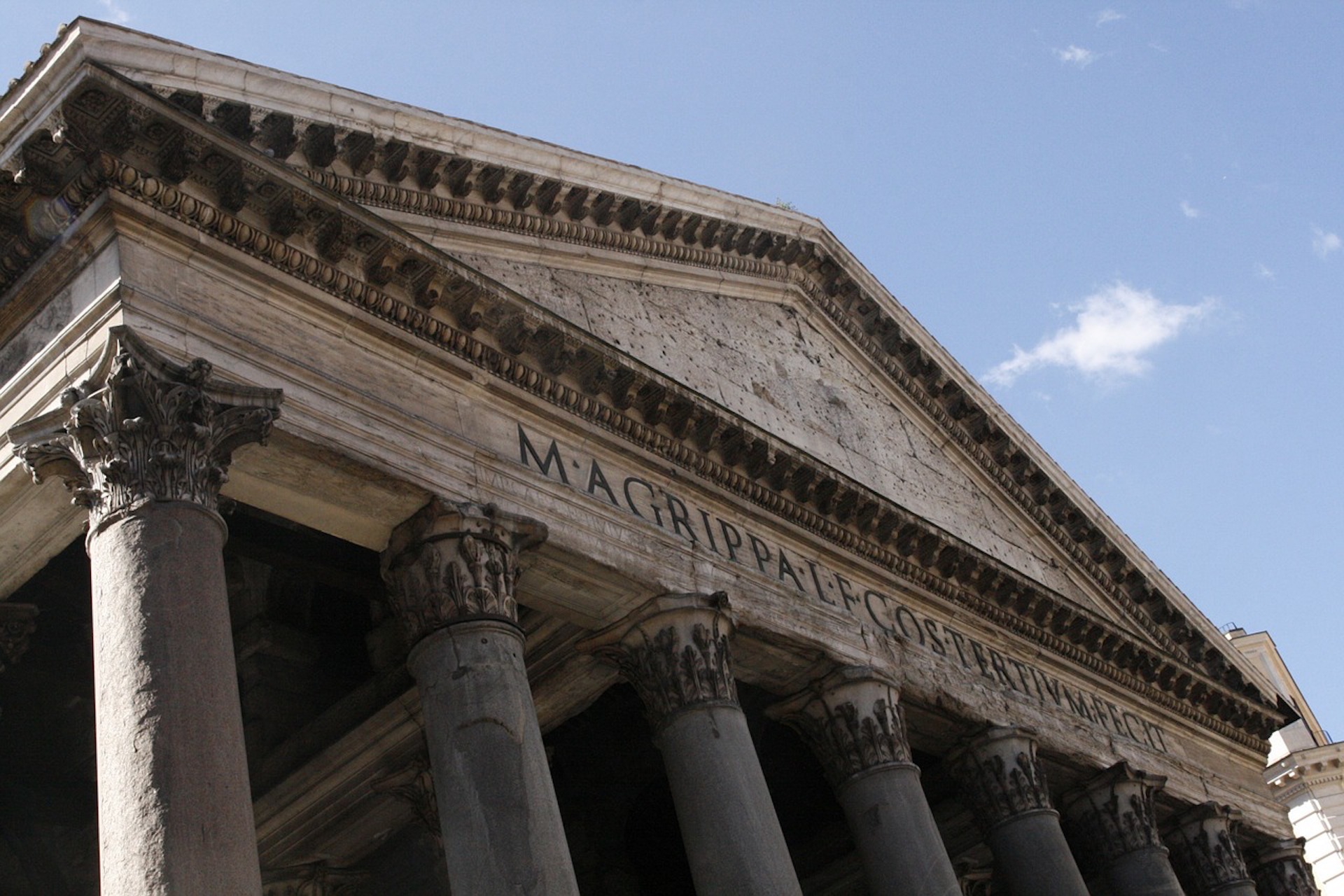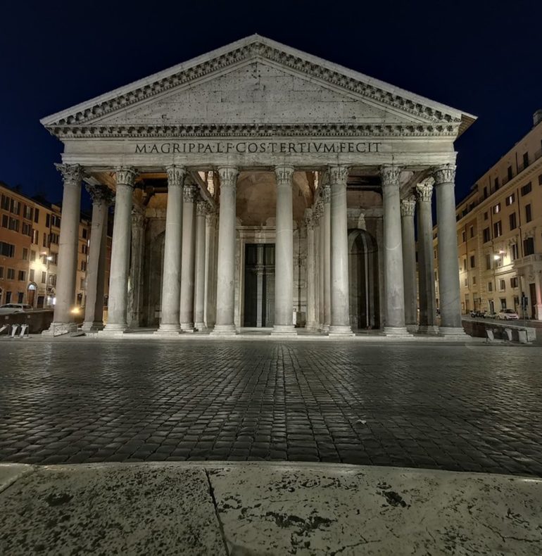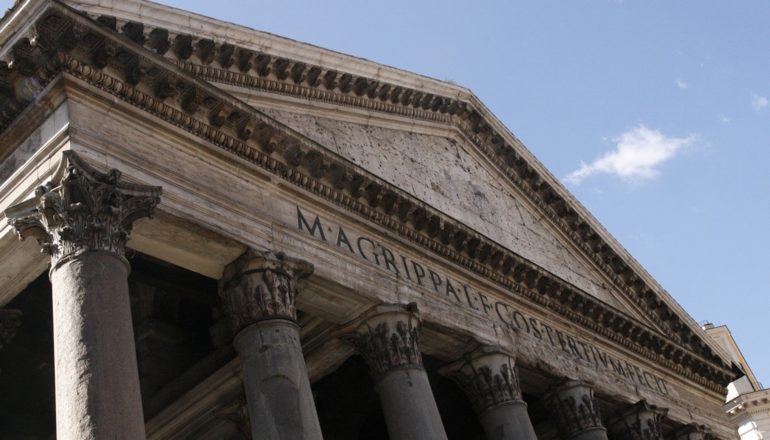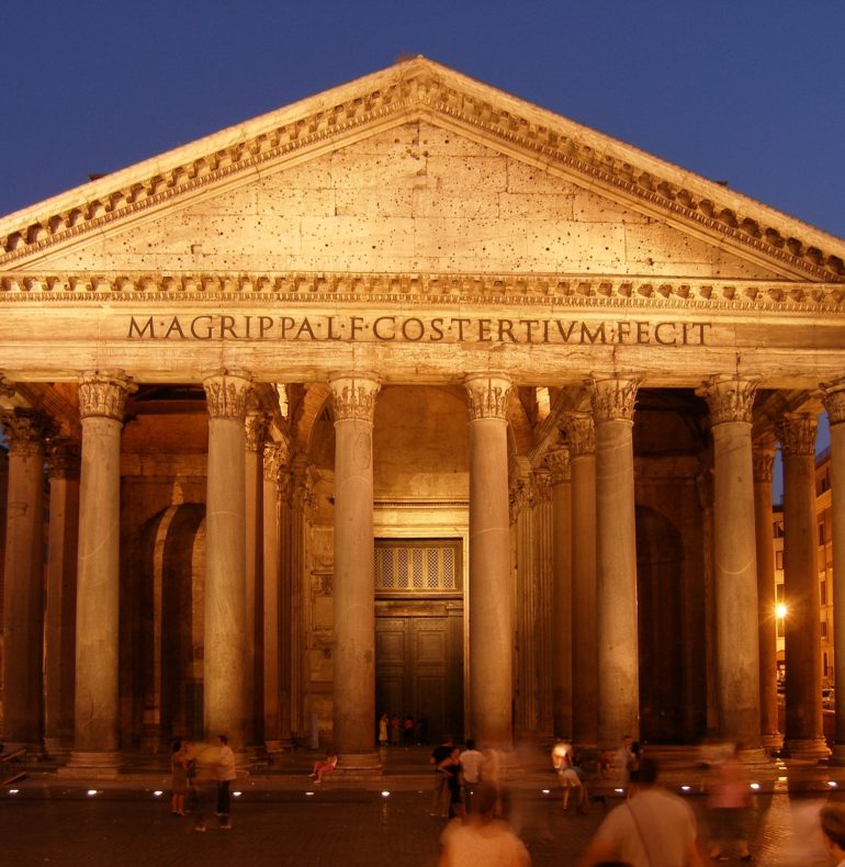 Unica costruzione romana rimasta praticamente intatta attraverso i secoli, questo edificio fu fondato tra il 25 e il 27 a.C da Agrippa, come Tempio dedicato ai dodici Dei ed al sovrano vivente.
